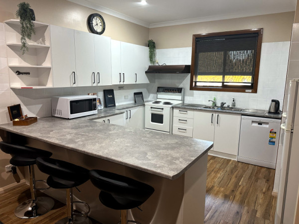 Fully equipped, generous kitchen - electric stove / hotplates, microwave, full-size fridge, dishwasher, tea and coffee making facilities, crockery, cutlery, pots and pans, sandwich toaster. Complimentary tea and coffee.